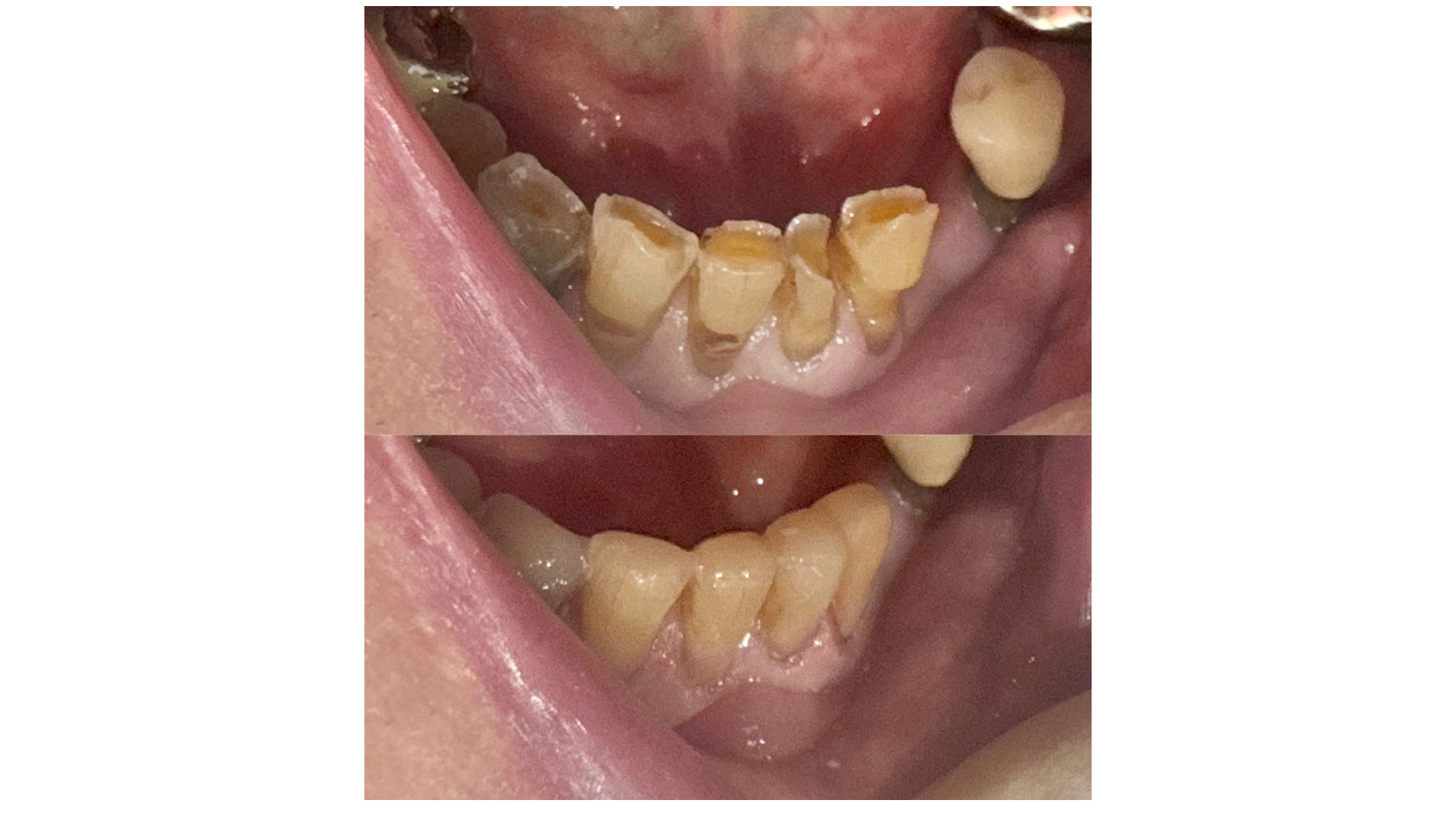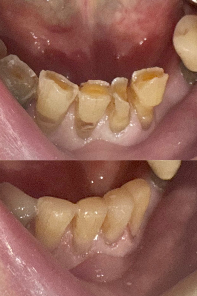 Worn teeth can be soft and in some cases have areas of decay, this needs to be removed to allow a strong bond to the tooth surface.
